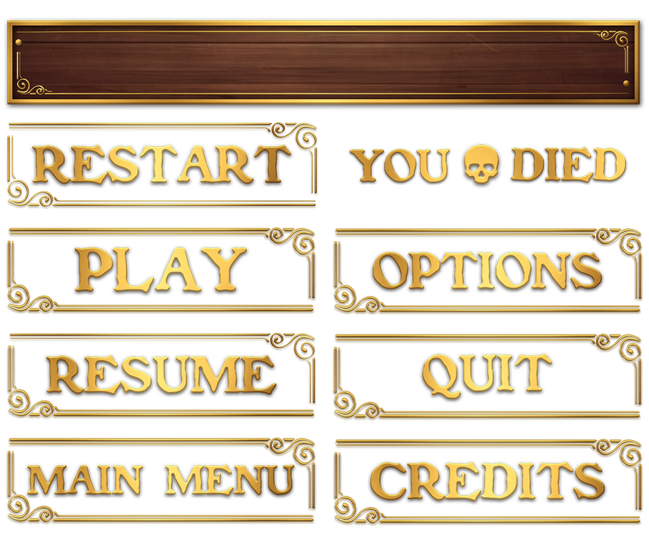 Initially we were aiming to have a credits screen, pause menu and a death screen. Those were the UI assets that sadly did not make it into the game. Had they been implemented into the game they would have had the same hover effect as inside the main menu, it would have looked something like this: