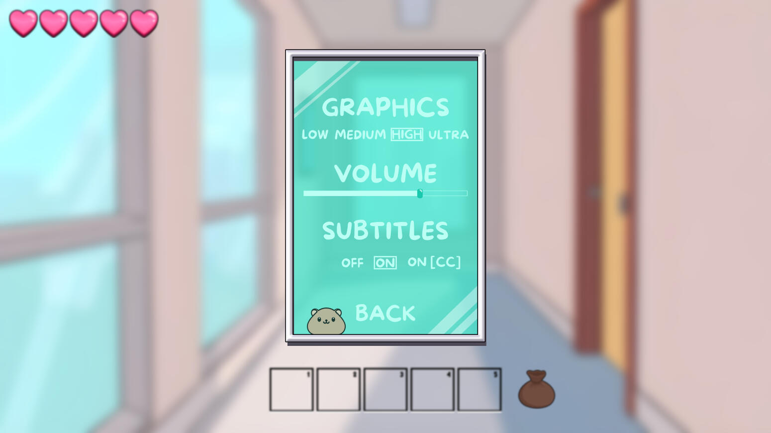 Initially we were aiming to have a credits screen, pause menu and a death screen. Those were the UI assets that sadly did not make it into the game. Had they been implemented into the game they would have had the same hover effect as inside the main menu, it would have looked something like this: